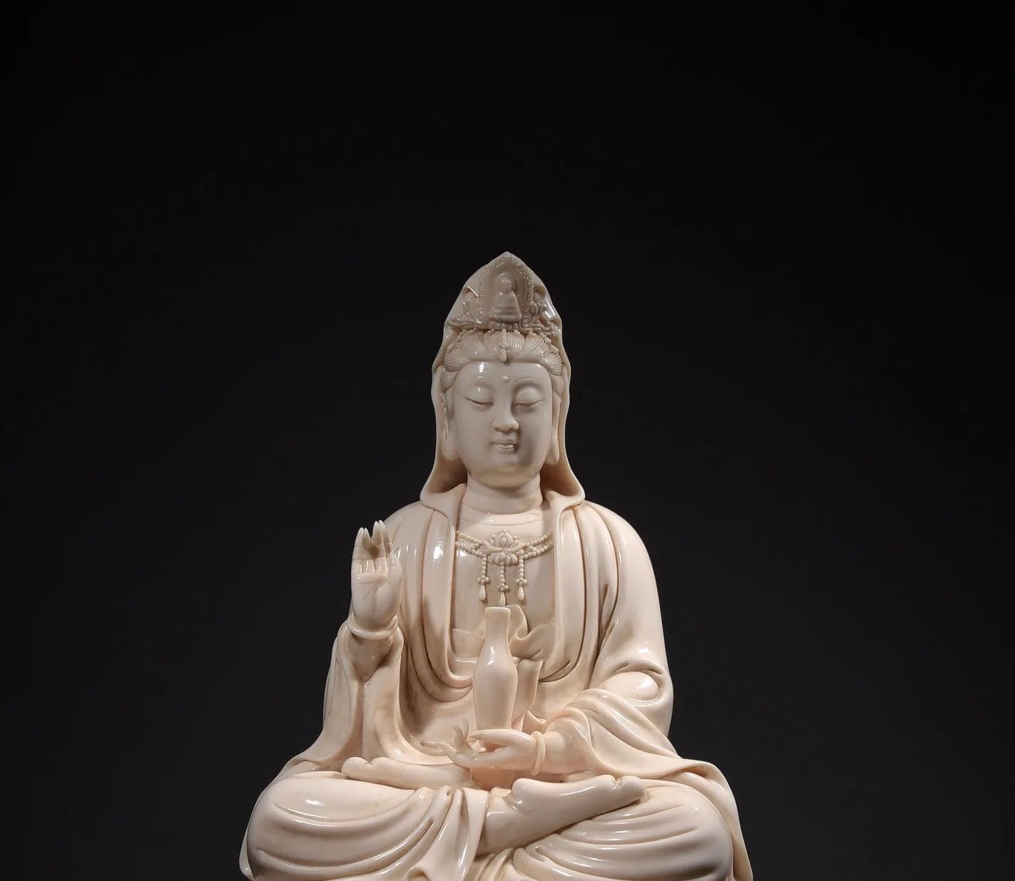 Dehua white porcelain has captivated the world with its jade-like, creamy-white appearance, embodying a cultural symbol enriched by millennia of history and artistry. Its most distinctive feature lies in its unique glaze color, honored with the esteemed name “Chinese White” (Blanc de Chine). The glaze is not pure white but exhibits subtle tones of yellow, pink, or milky white, presenting a soft and warm texture reminiscent of ivory or solidified lard—elegant, serene, and subdued. The glossy, crystal-like surface of the glaze tightly bonds with the porcelain body, creating an overall jade-like quality that reflects the traditional Chinese aesthetic of associating virtue with jade.
