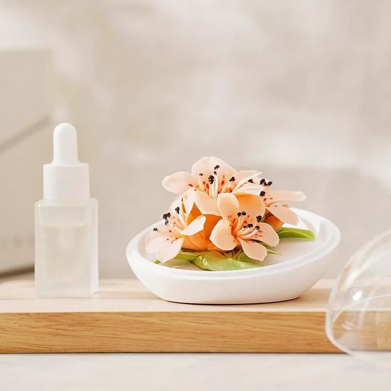 This Azalea Ceramic Aroma Diffuser is meticulously handcrafted from fine Dehua porcelain, with layered, fluid petals that capture the azalea’s vivid yet graceful charm. The premium plaster base comes in two styles—angled for a dynamic, gallery-like display and flat for a clean, stable presence that suits everyday placement. Add a few drops of essential oil to let a soft fragrance slowly unfold, creating a calm, elegant ambiance in your living room, bedroom, or study.